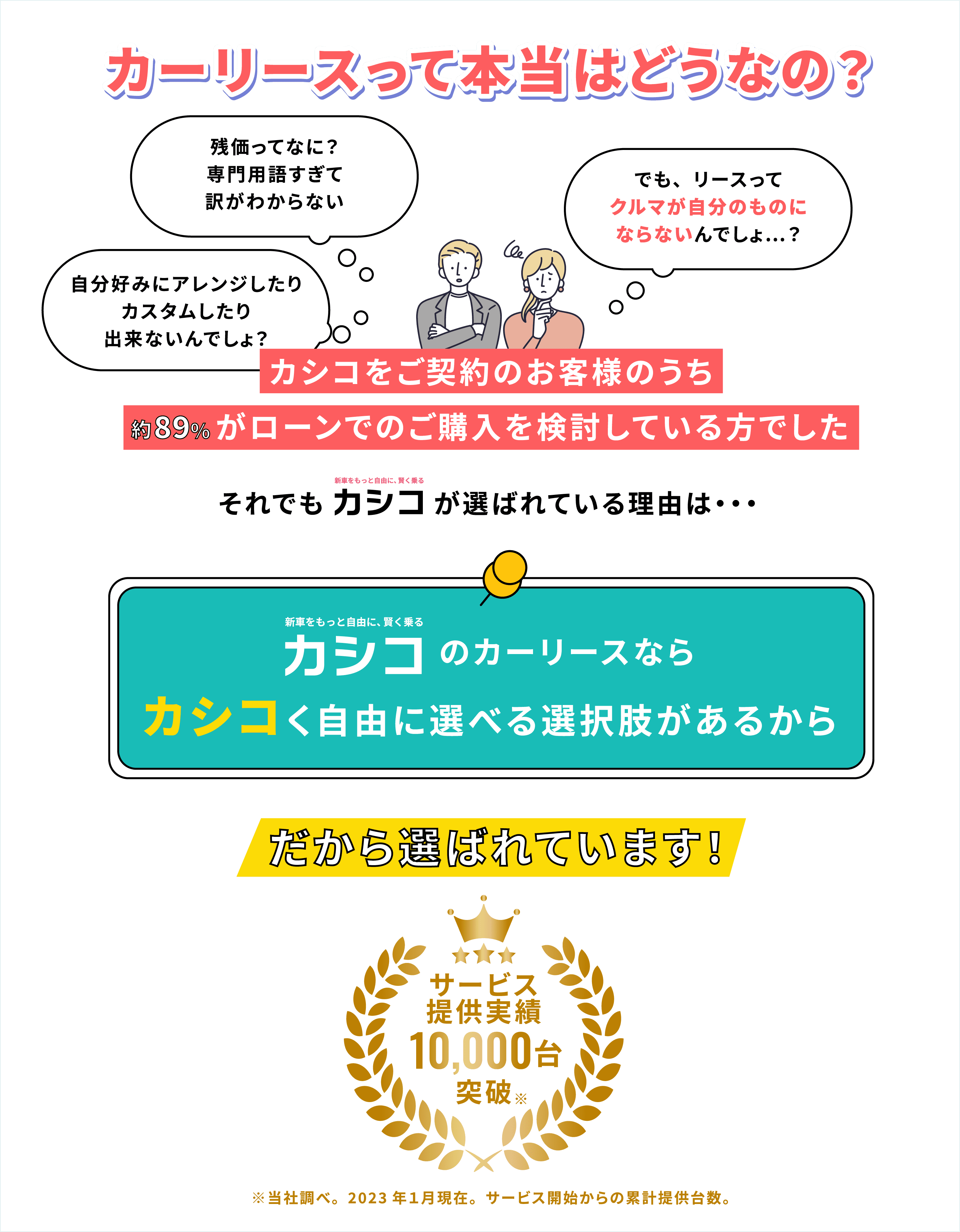 カシコが提供する新車・中古車を対象にした個人カーリースです。