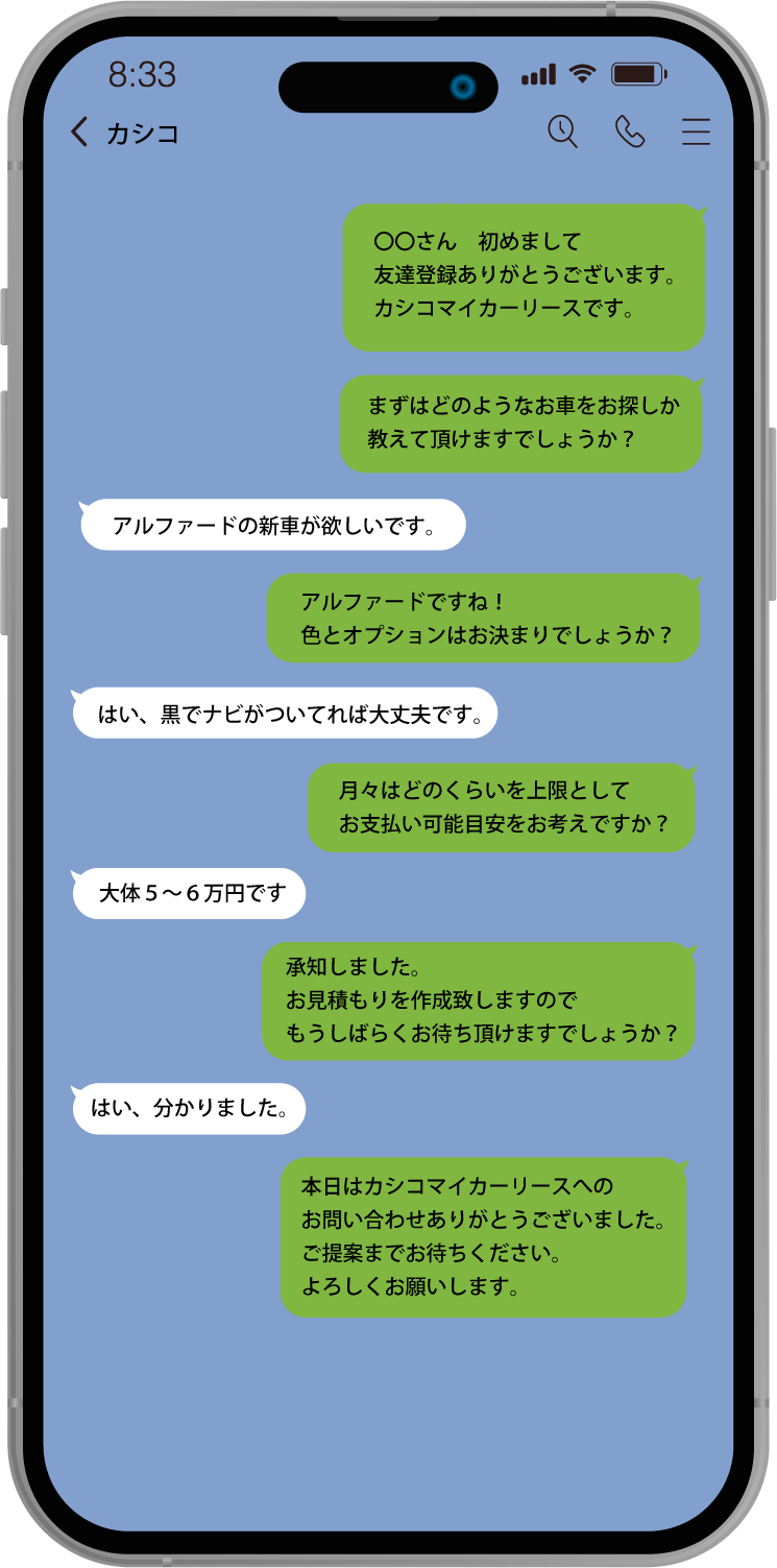 車選びのプロが在住するカシコスタッフにより、ご要望に合わせたプランのご提案から審査、納車手配まで全てWEBでご対応します。